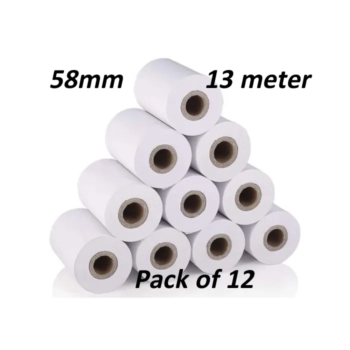 Receipt Paper Roll for 58mm x 13meter Mobile Portable Thermal Printer (Pack of 12 Rolls)